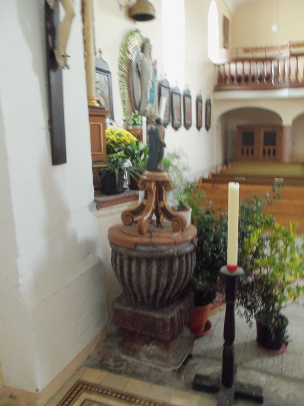 Nová křtitelnice s barokním víkem a sv. Janem Křtitelem